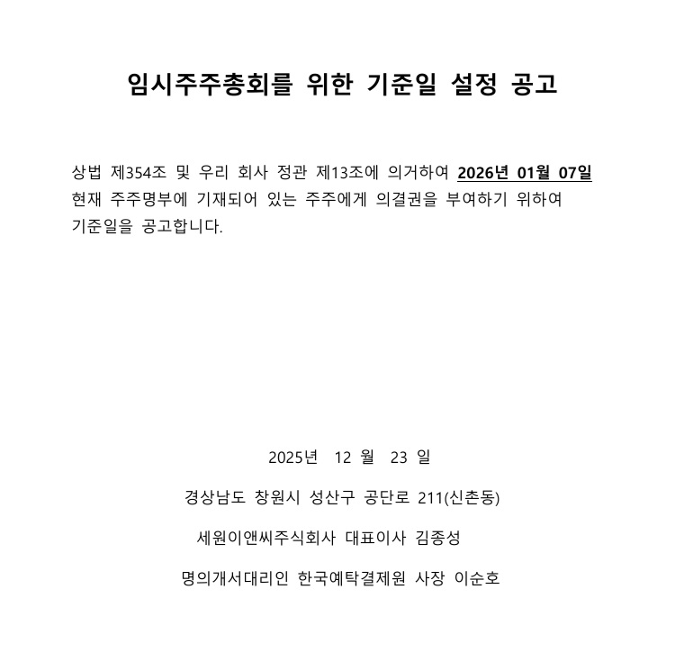 회사의 주요 경영사항 공개를 통해 투명경영, 책임경영을 실천합니다. 고객에게 다가가기 위한 한 걸음, 항상 최선을 다하는 세원이앤씨가 되겠습니다.